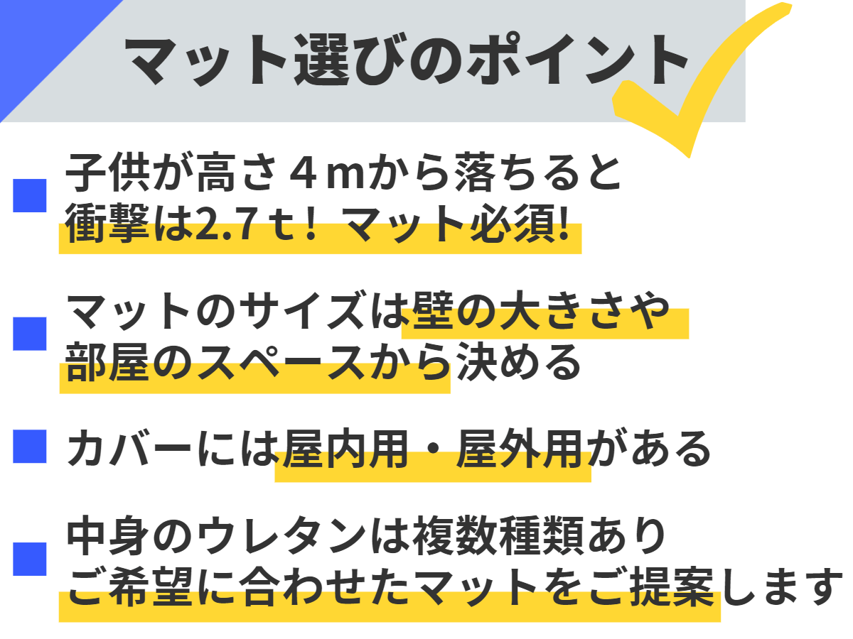 マットの厚みがどれくらいにしたらいいか分からないという方は、お気軽にお問い合わせください!