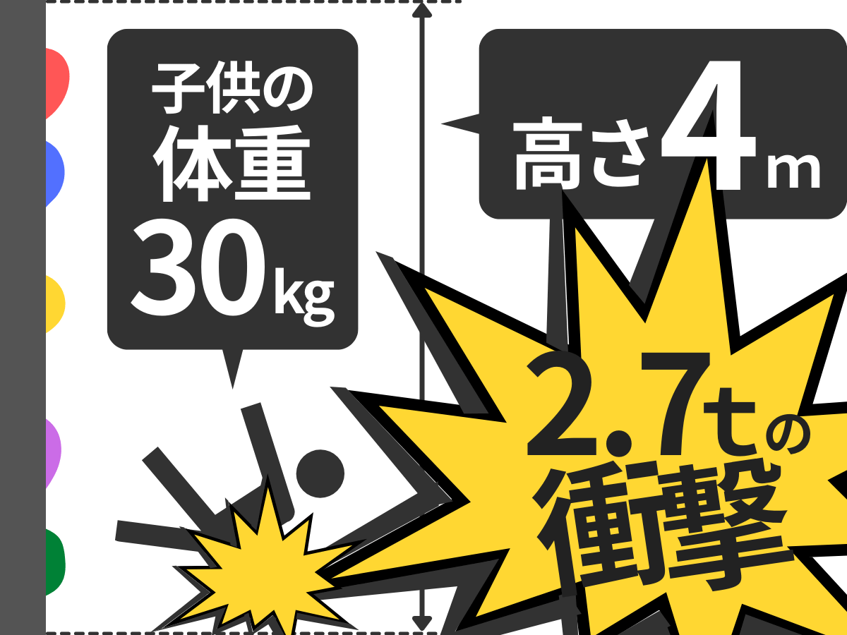 体重30kgの子供が、高さ4mから落下した場合、その衝撃は約2.7tにもなります。