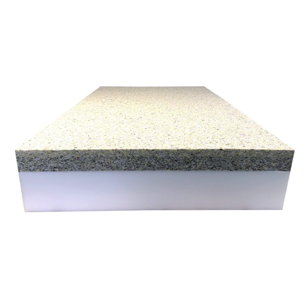 ボルダーマットミディアムにチップウレタンを貼り合せた心地よい着地ができる丈夫な組合せ。着地時の衝撃をチップウレタンが吸収。底付きを心配する方におすすめ。