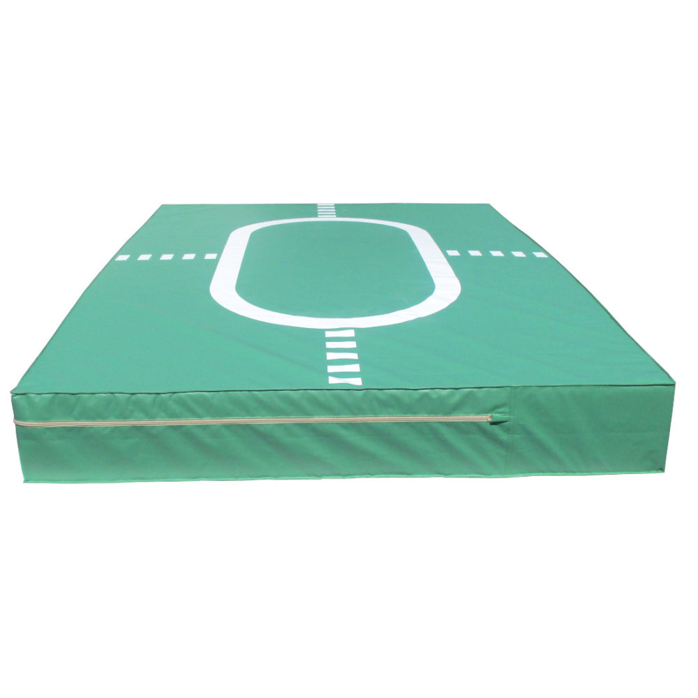 業界初の目印付きエバーマットです。真ん中に目印があるから、初心者の方の練習や、体育の授業で、目印に向かって安心して着地することができます。